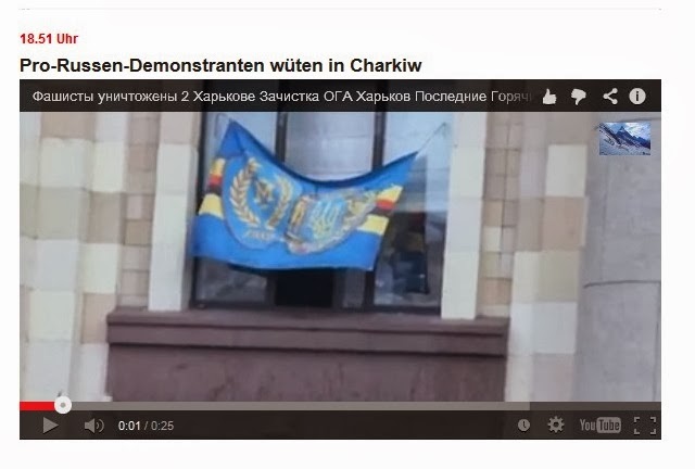 Dafür zeigt BILD aber ein Video wie die Bürger von Charkow die Nazis aus dem Rathaus vertreiben unter der Überschrift "Pro-Russen-Demonstranten wüten in Charkiw"