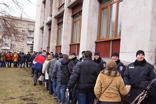| Antifaschisten vertreiben Timoschenkos Nazis aus dem Rathaus. |