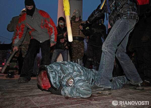 | Der Abgeordnete der Partei der Regionen Gruschewski wird misshandelt. Februar 2014, Kiew |